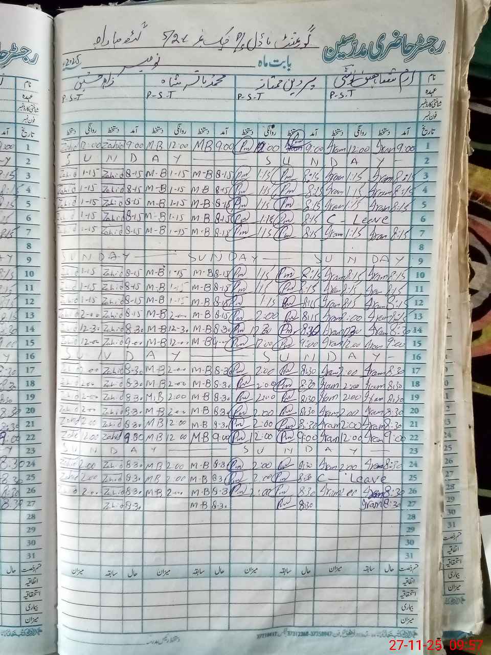 | Name: IR**** SH**** Designation: (School Headmaster's/Headmistress's) PST Phone/Cell Number: 03**** |