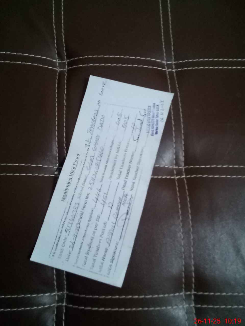| Attendance Register | Head Teacher | MEA with School | Visit Proof |