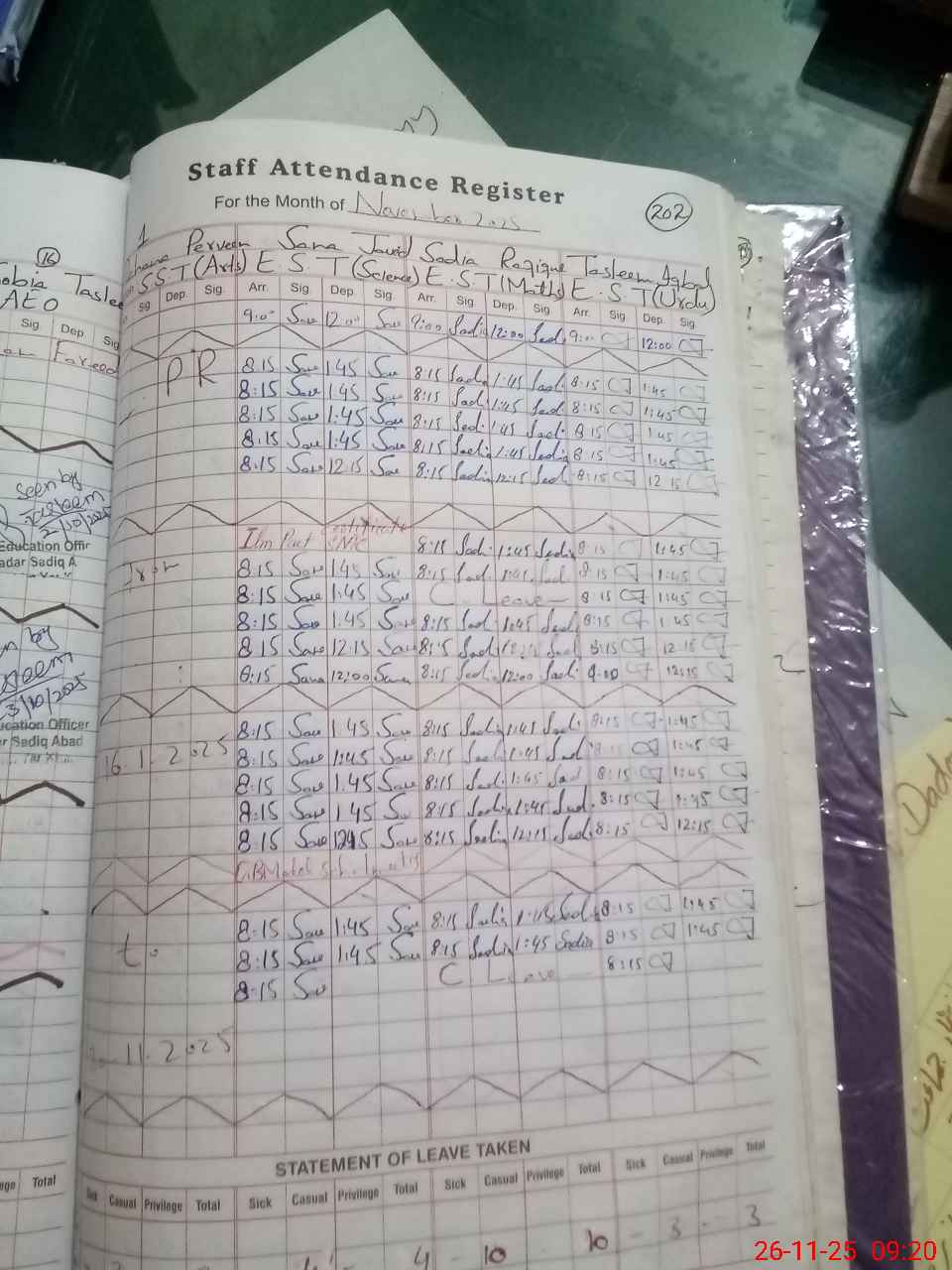 | Leave | Duty | Absent | Maternity | Medical | Ex- Pak |