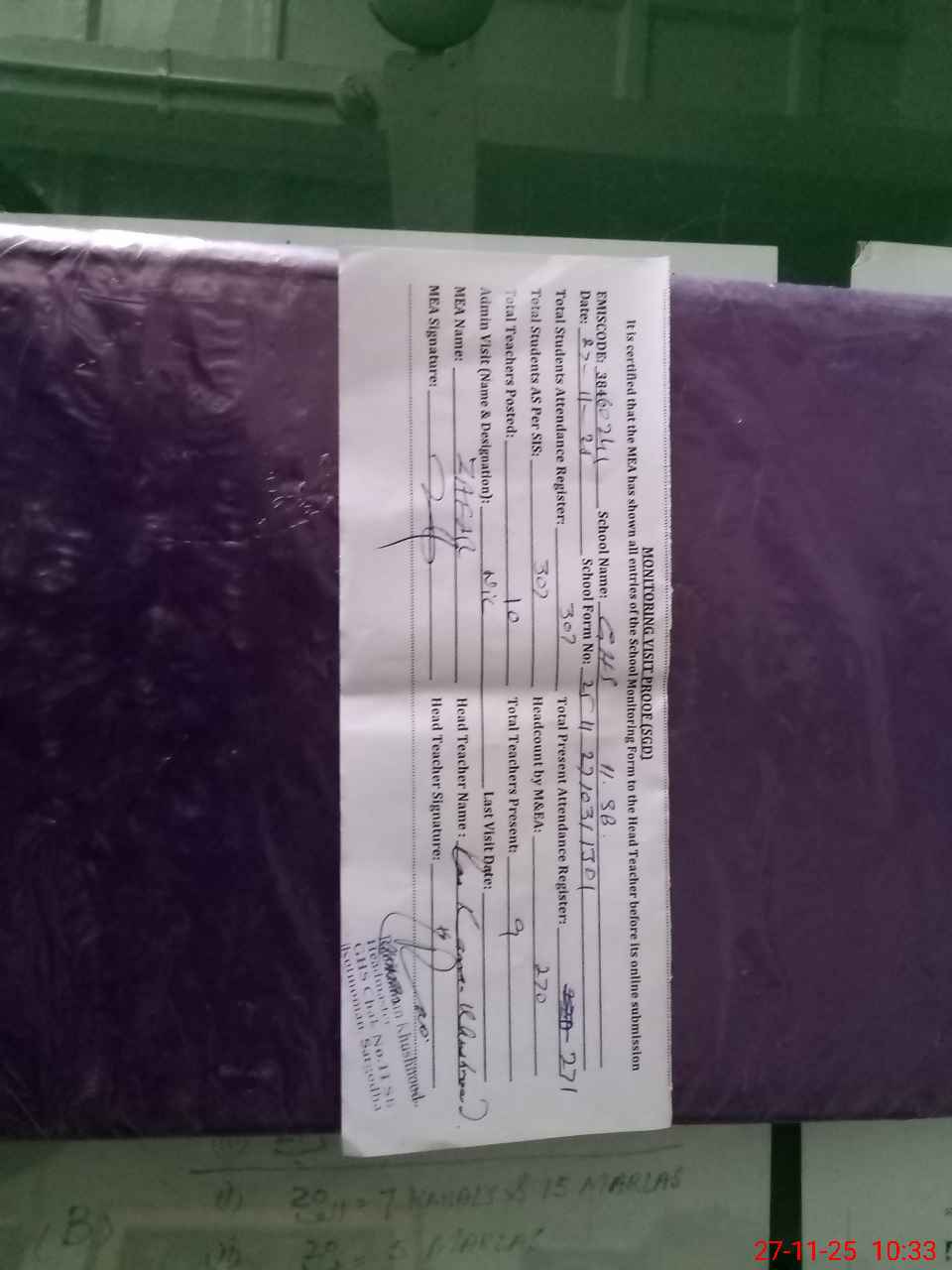| Certified that this School was Inspected by the Undersigned MEA/DMO Today and the Information Stated Above is as Per Record. | |||||