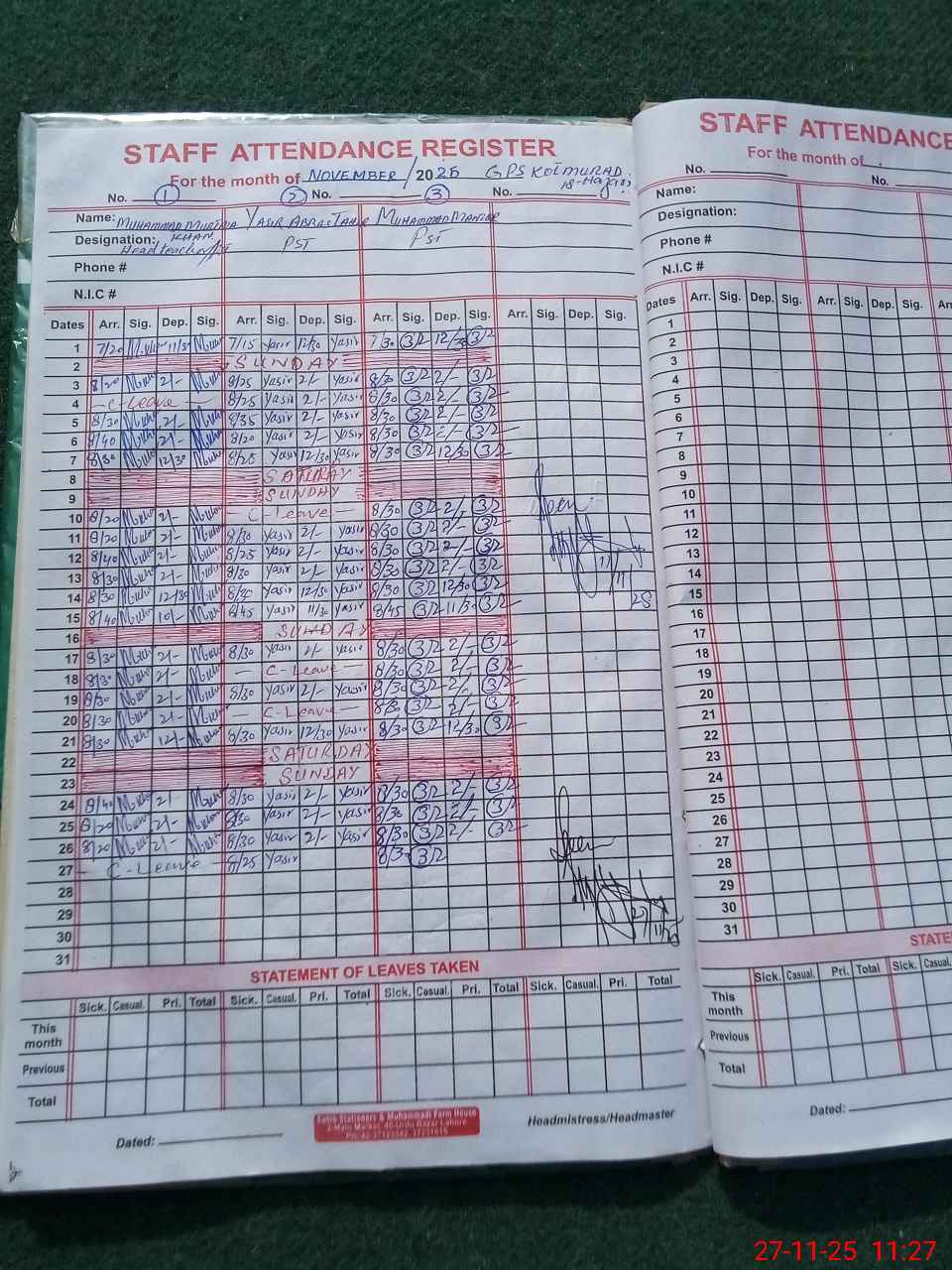 | Name: Mu**** Mu**** Kh**** Designation: (School Headmaster's/Headmistress's) PST/ Phone/Cell Number: 03**** |