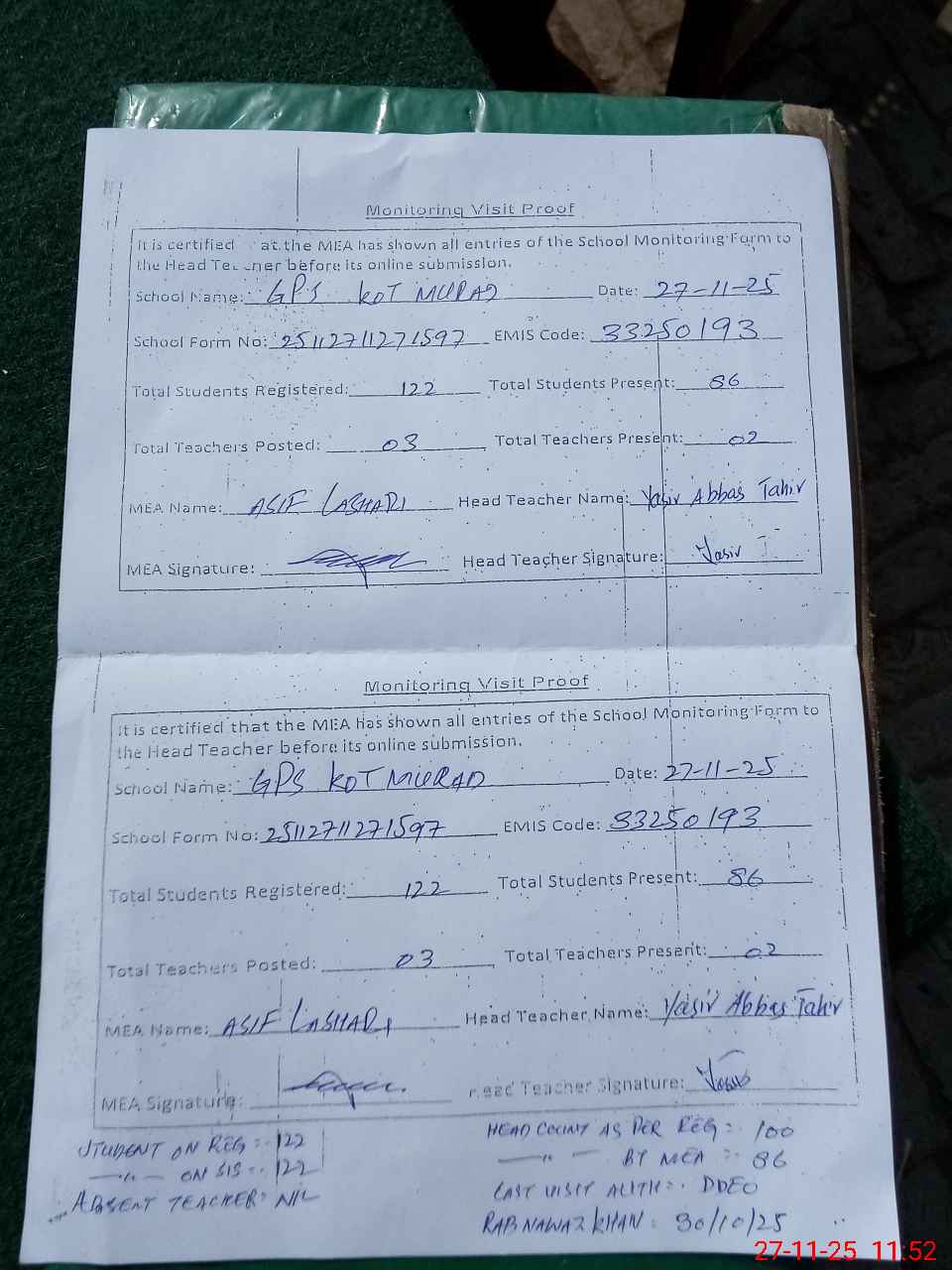 | EMIS Code: 33250193 | Name of School: GPS KOT MURAD | |||