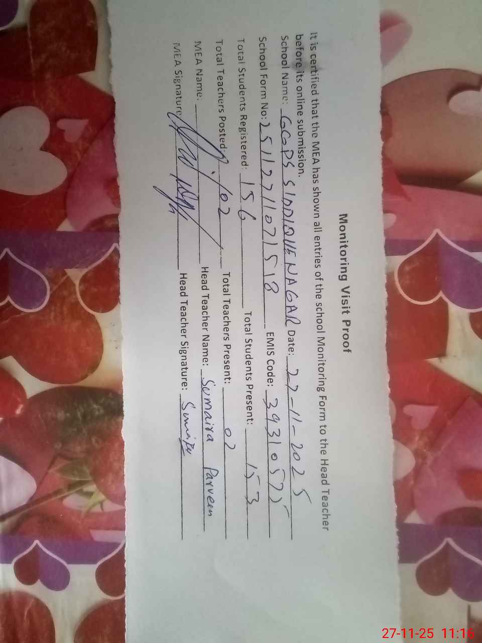 | EMIS Code: 39310575 | Name of School: GGPS SIDDIQUE NAGAR SHAIR GARRH | |||