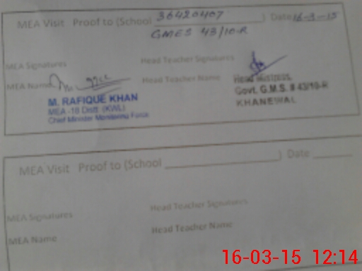| EMIS Code: 36420407 | Name of School: GMES 43/10-R, KHANEWAL | |||