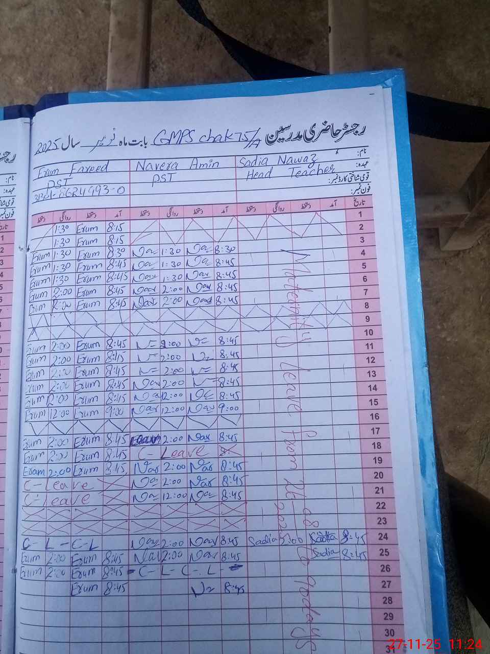 | Leave | Duty | Absent | Maternity | Medical | Ex- Pak |