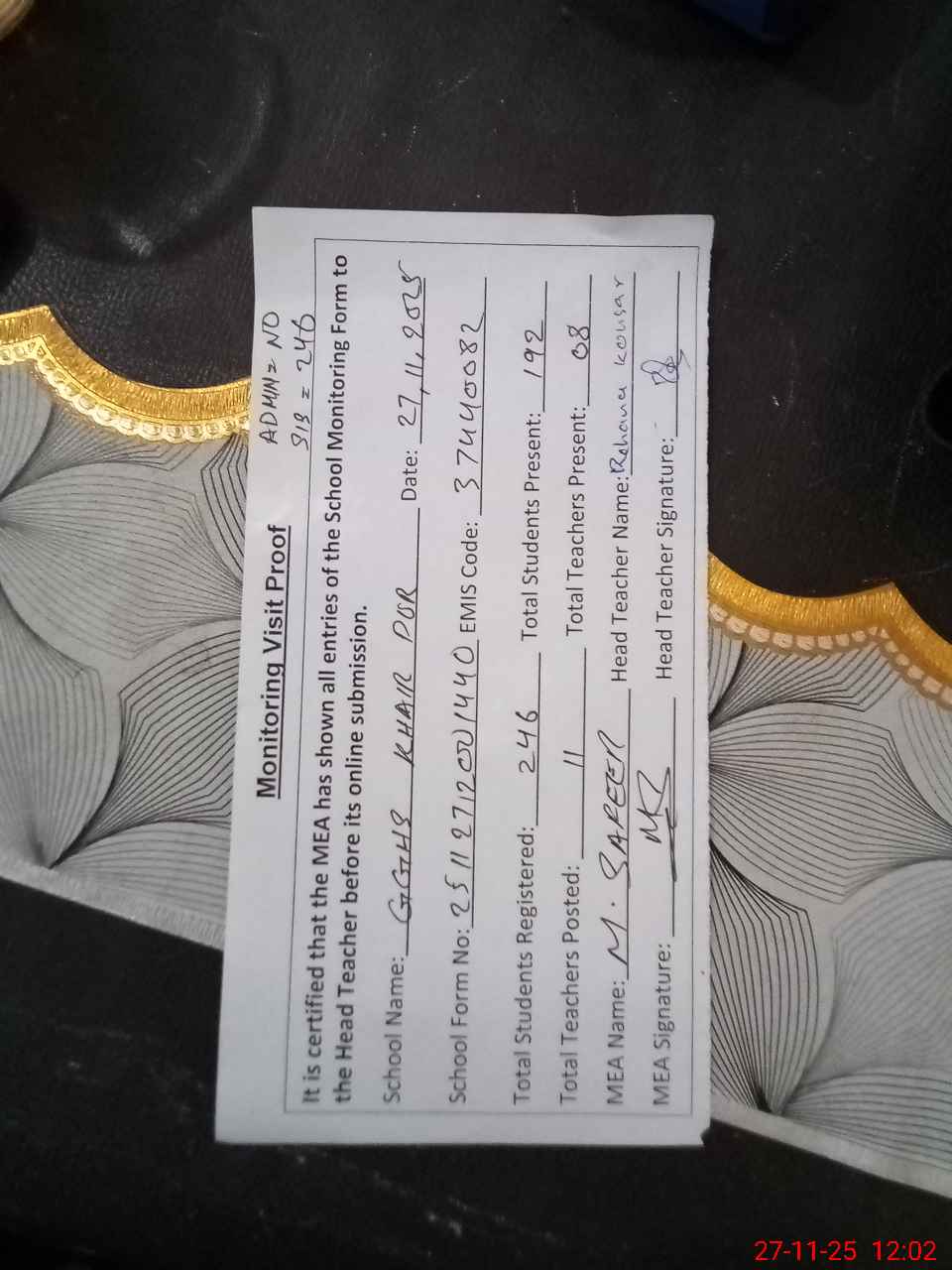 | EMIS Code: 37440082 | Name of School: GGHSS KHAIR PUR | |||