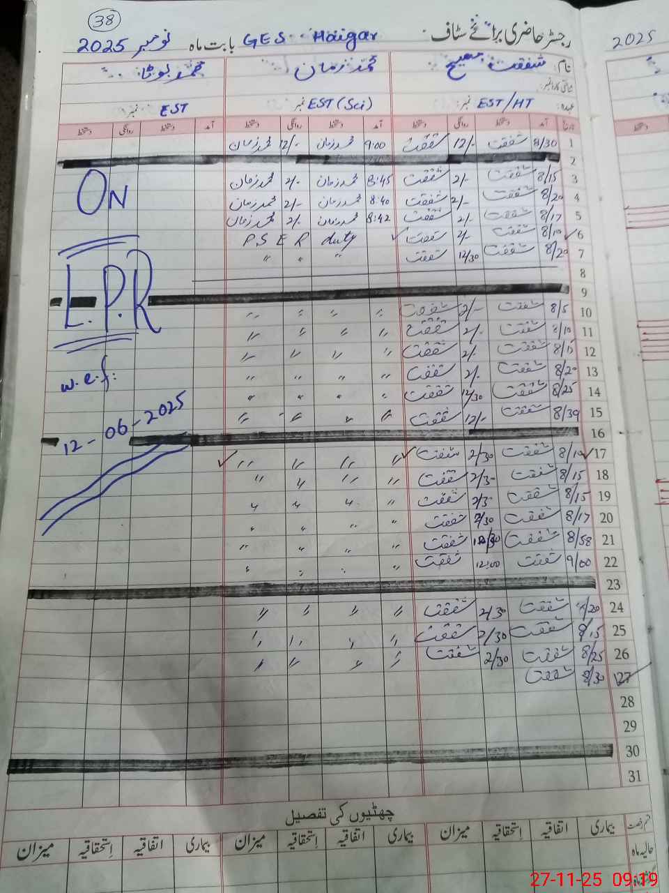 | CNIC | Full Name | Designation | R/C | Absence During Last Calender Month |
