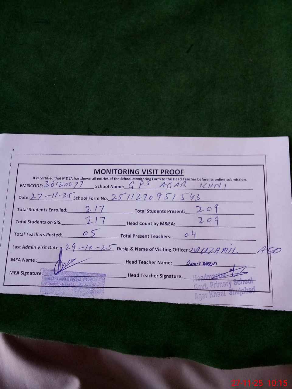 | EMIS Code: 36120077 | Name of School: GPS AGAR KHANI P.O AGAR KHANI MOZA RUKKAN HATI | |||