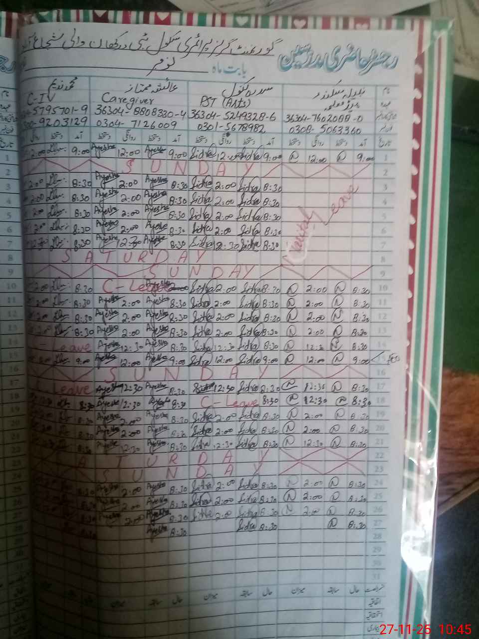 | Name: Na**** Si**** Designation: (School Headmaster's/Headmistress's) PST Phone/Cell Number: 03**** |