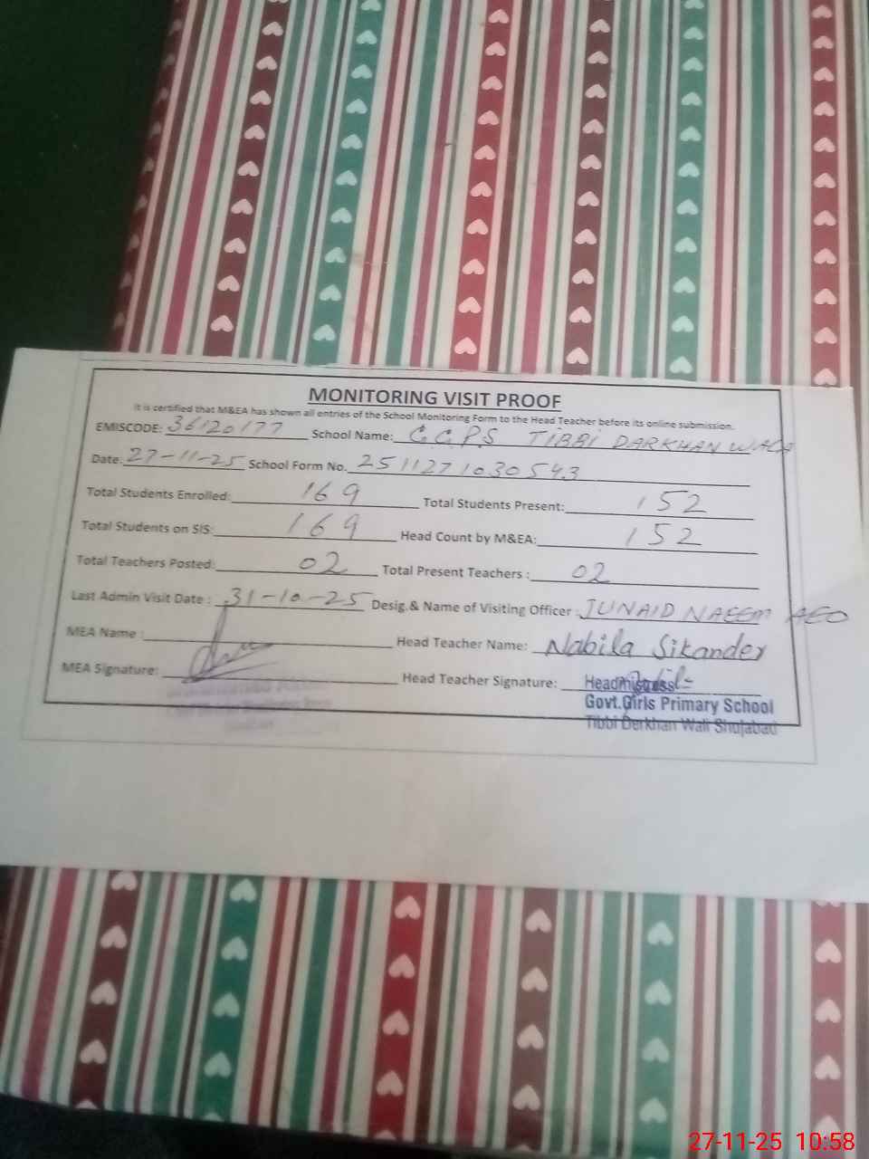 | EMIS Code: 36120177 | Name of School: GGPS TIBBI DARKHAN WALA | |||