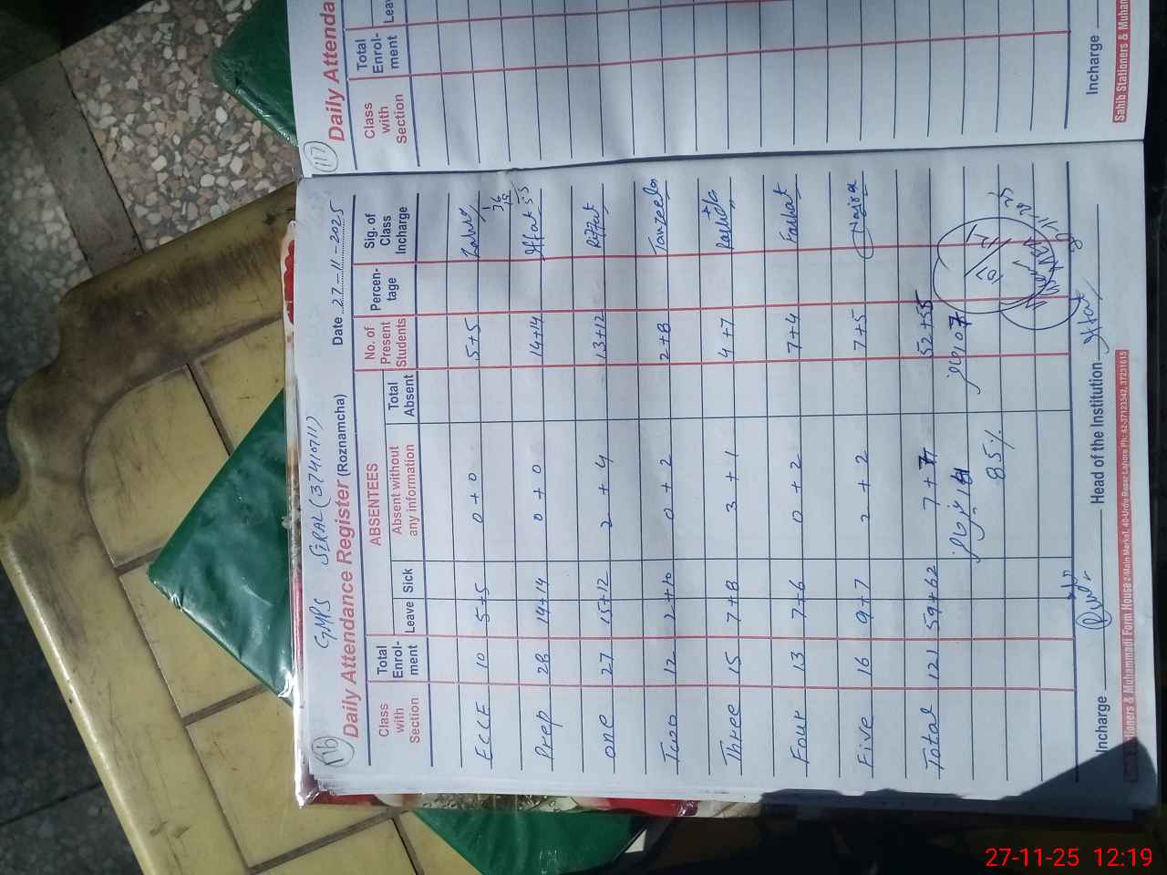 | Attendance Register | Head Teacher | MEA with School | Visit Proof |
