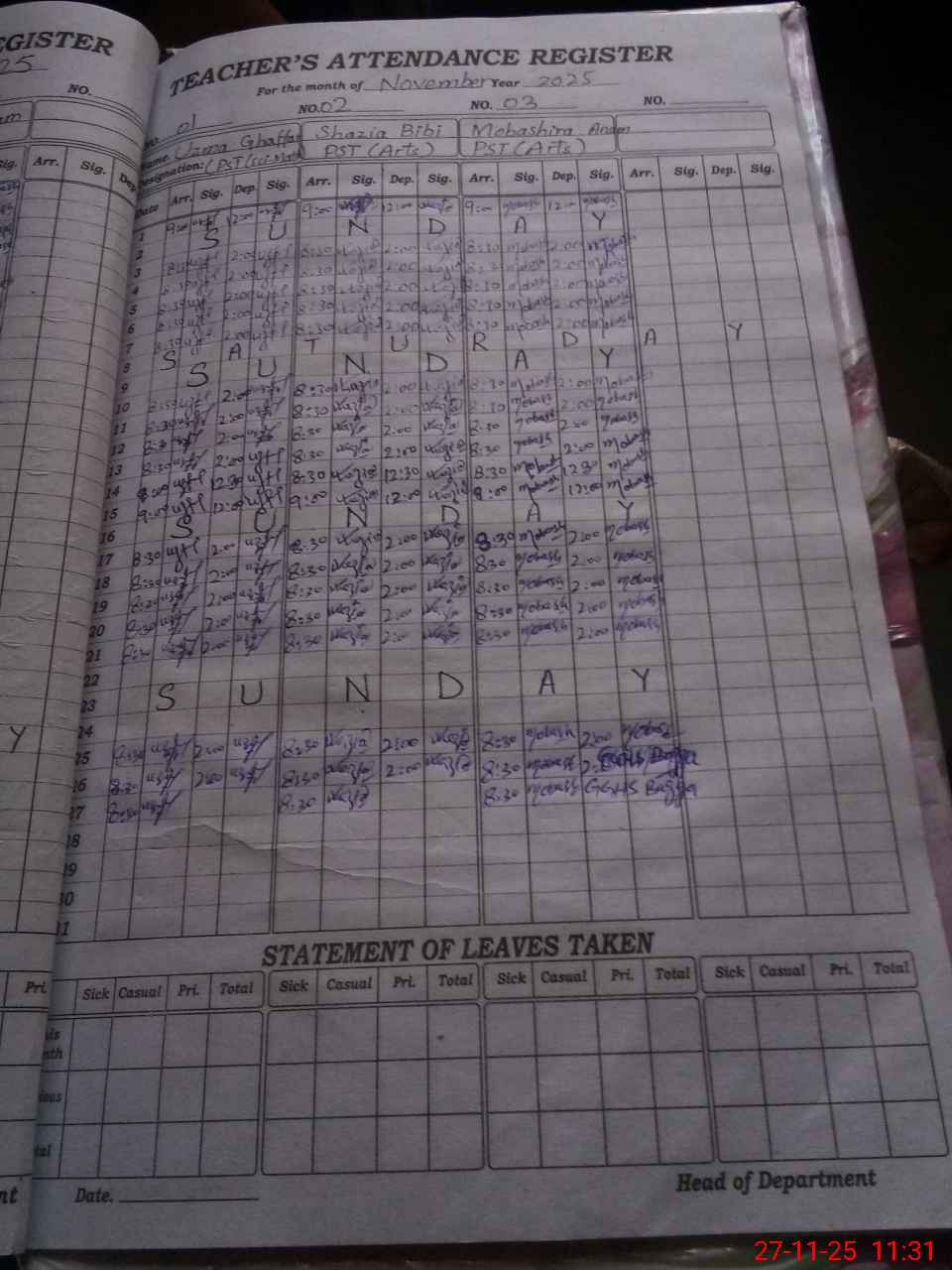 | 37**** | Mo**** An**** | PST | Regular | 0 | 0 | 0 | 0 | 0 | 0 | 0 | 0 | 0 | Exam Duty |