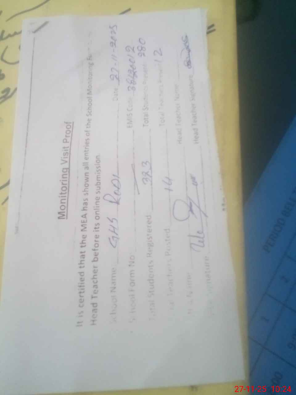 | EMIS Code: 38120012 | Name of School: GHS RODI | |||