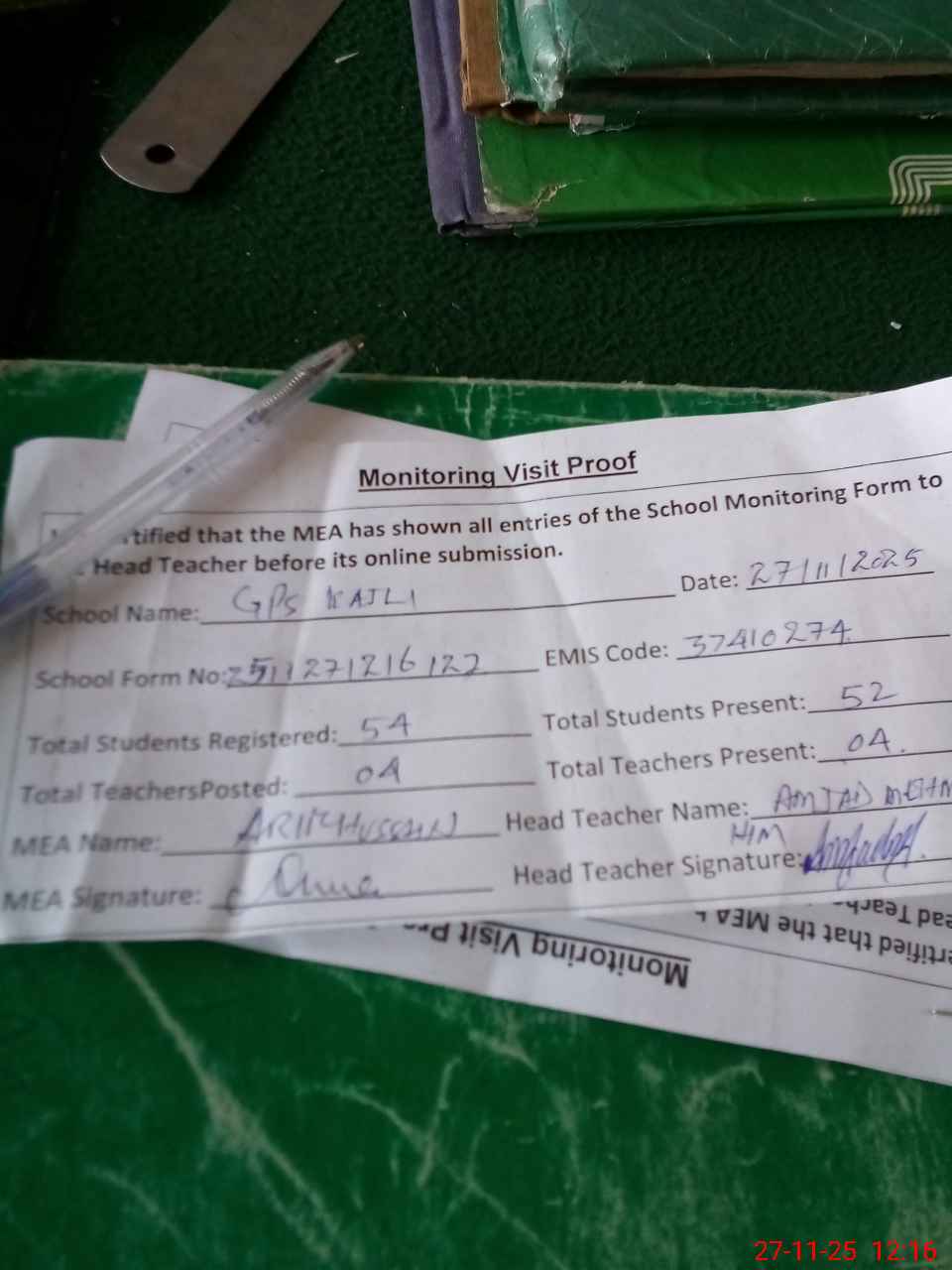 | EMIS Code: 37410274 | Name of School: GPS KAJLI | |||