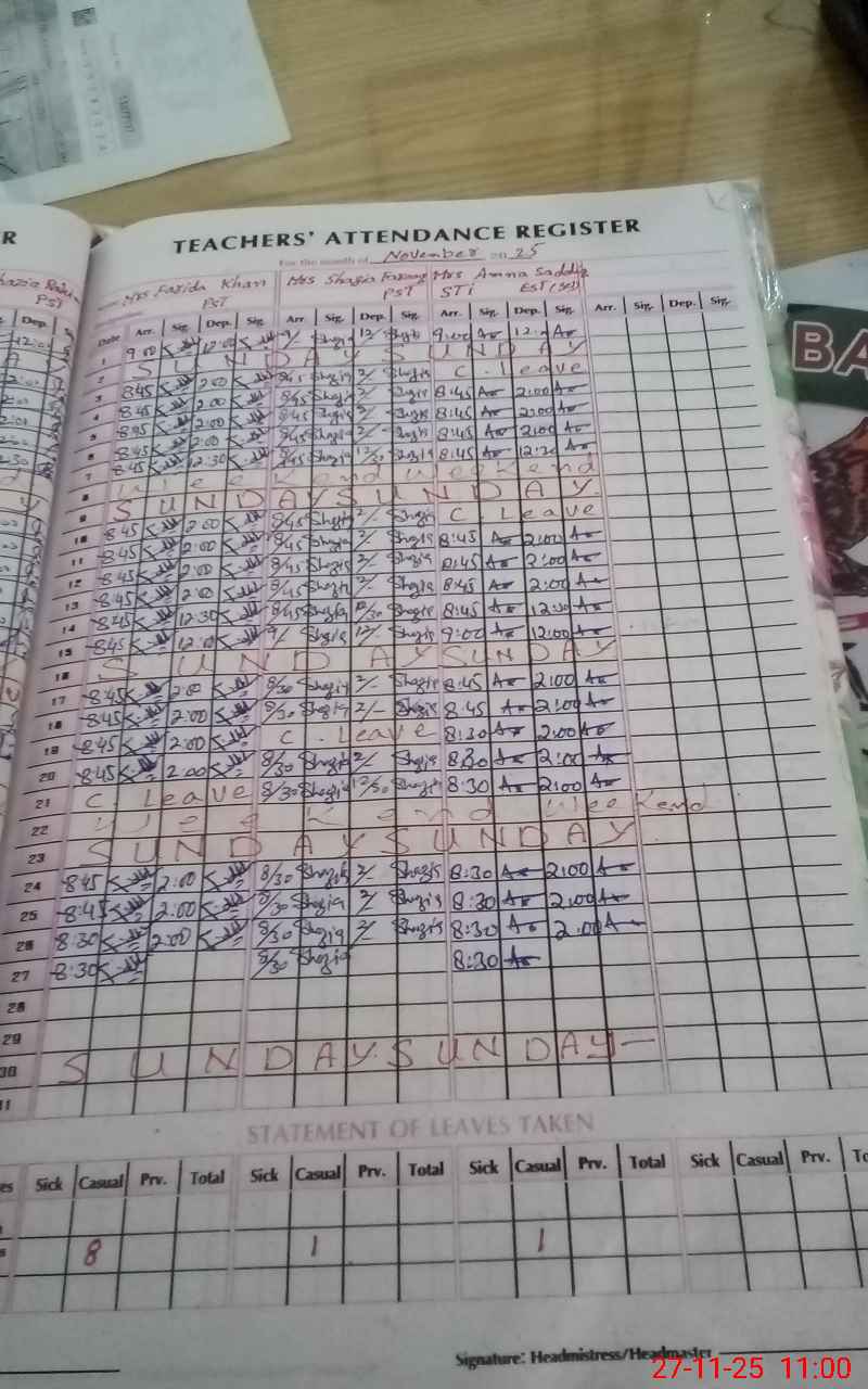 | Name: KH**** FA**** Designation: (School Headmaster's/Headmistress's) S.S.T.(GEN) Phone/Cell Number: 03**** |