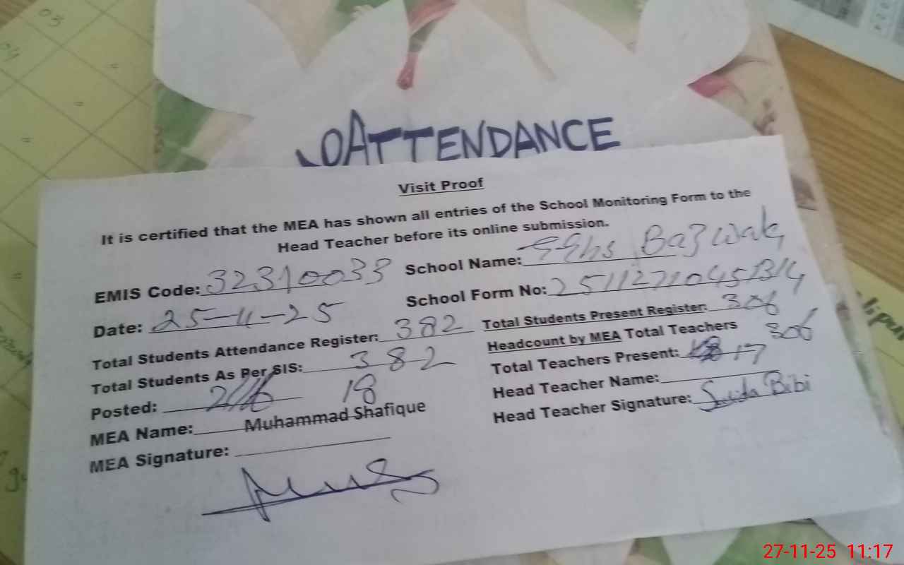 | Attendance Register | Head Teacher | MEA with School | Visit Proof |