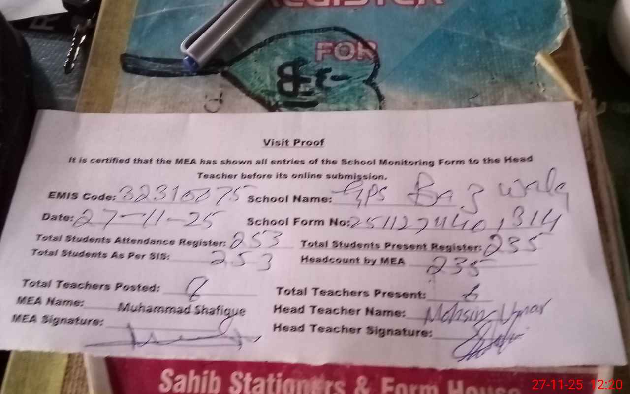 | EMIS Code: 32310075 | Name of School: GPS BAZ WALA | |||