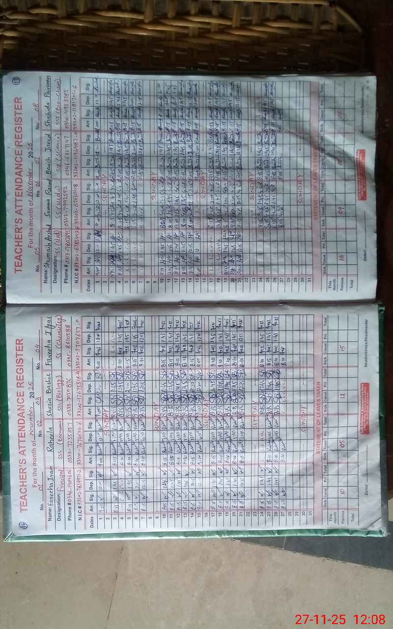 | Name: FA**** IR**** Designation: (School Headmaster's/Headmistress's) PRINCIPAL Phone/Cell Number: 03**** |