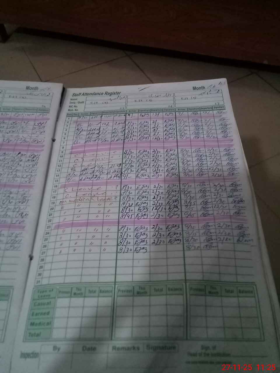 | 34**** | IF**** AH**** | JC | 0 | 0 | 0 | 0 | 0 | 0 | 0 | 0 | 0 | Absent (Un-Authorized) | |