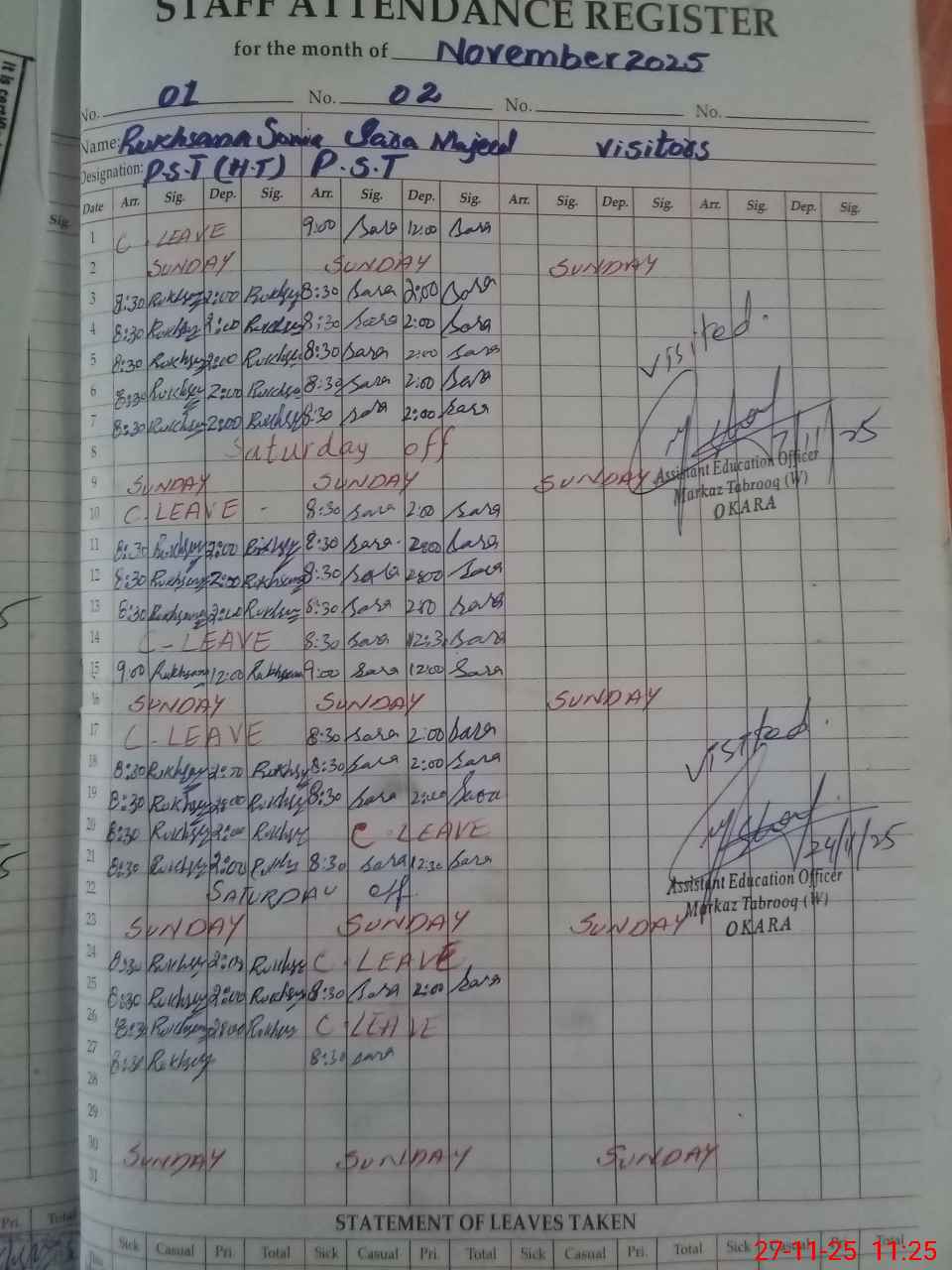 | Remarks (Use Separate Page if Required): Last Administrator visit by AEO 24-11-25. | |||||