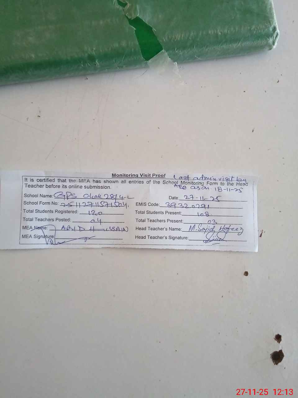 | Remarks (Use Separate Page if Required): Last Administrator visit by AEO as on 18-11-2025. | |||||
