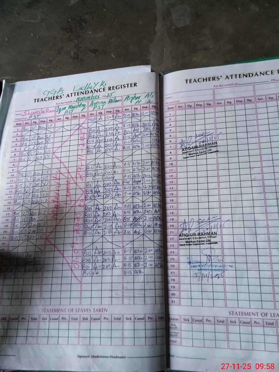 | Name: SH**** RA**** Designation: (School Headmaster's/Headmistress's) PST Phone/Cell Number: 03**** |