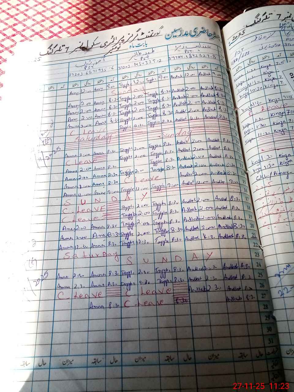 | CNIC | Full Name | Designation | R/C | Absence During Last Calender Month |