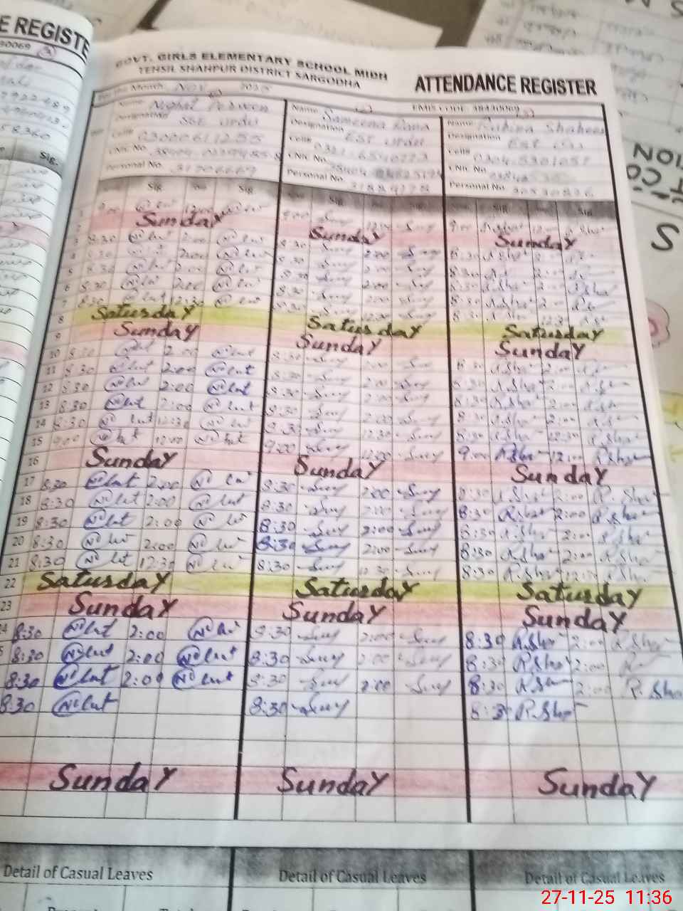 | CNIC | Full Name | Designation | R/C | Absence During Last Calender Month |