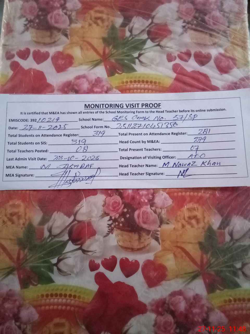 | EMIS Code: 39210219 | Name of School: GES CHAK NO. 57 SP | |||
