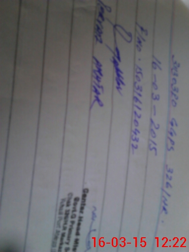 | Monitoring Date: 16-03-2015 | Start Time: 16-03-2015 12:03 PM | End Time: 16-03-2015 12:22 PM | Name of MEA: Pe**** Ak**** BN**** 12 | |