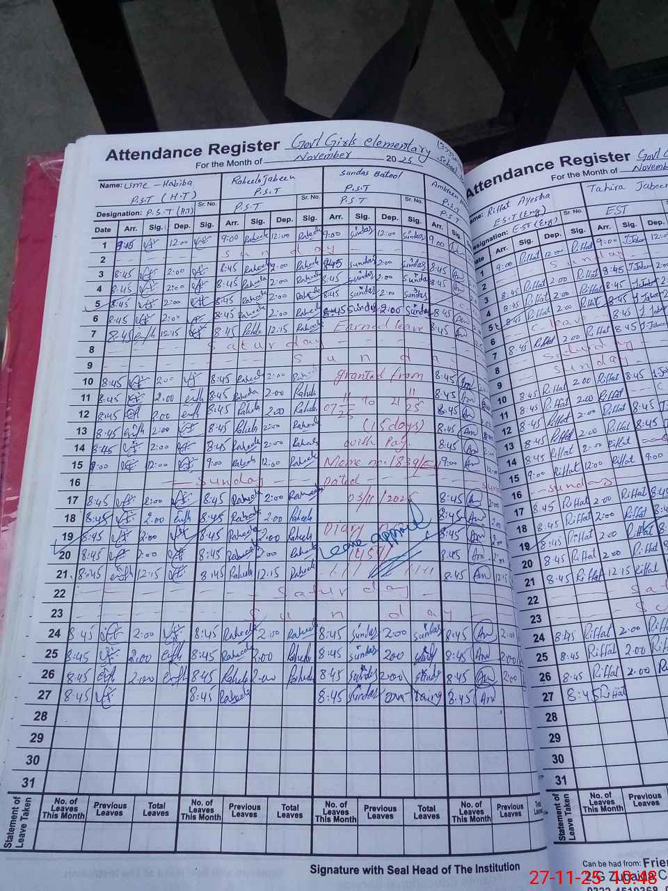 | Leave | Duty | Absent | Maternity | Medical | Ex- Pak |