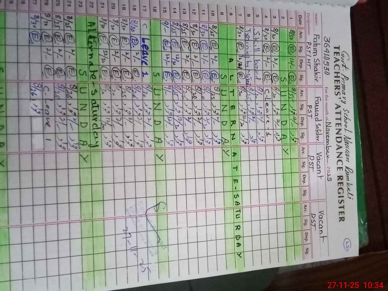 | Name: FA**** SH**** Designation: (School Headmaster's/Headmistress's) PST Phone/Cell Number: 03**** |