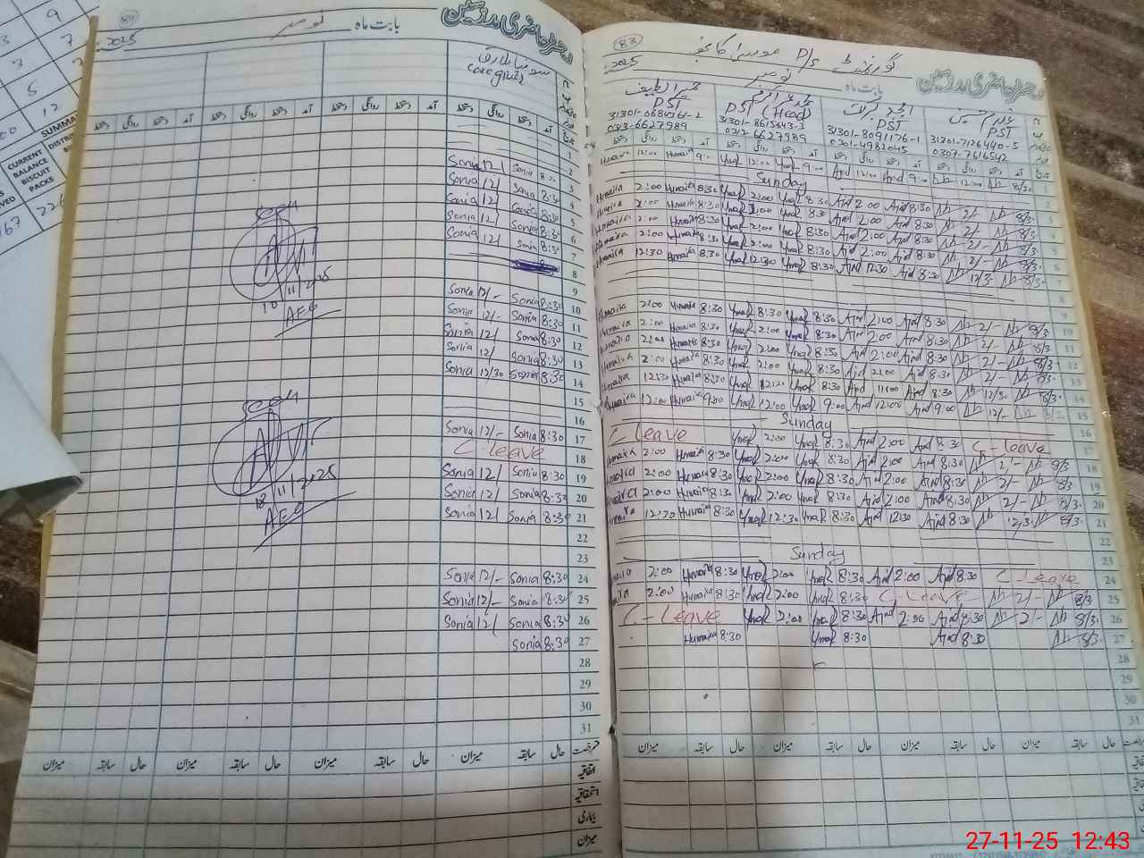 | Leave | Duty | Absent | Maternity | Medical | Ex- Pak |