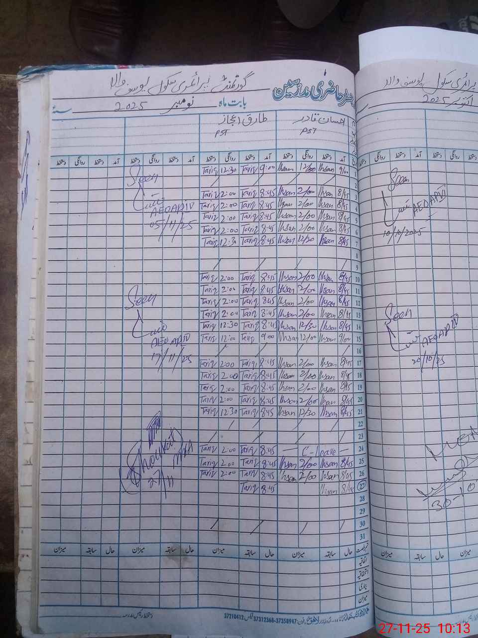 | Name: AB**** QA**** Designation: (School Headmaster's/Headmistress's) PST Phone/Cell Number: 03**** |