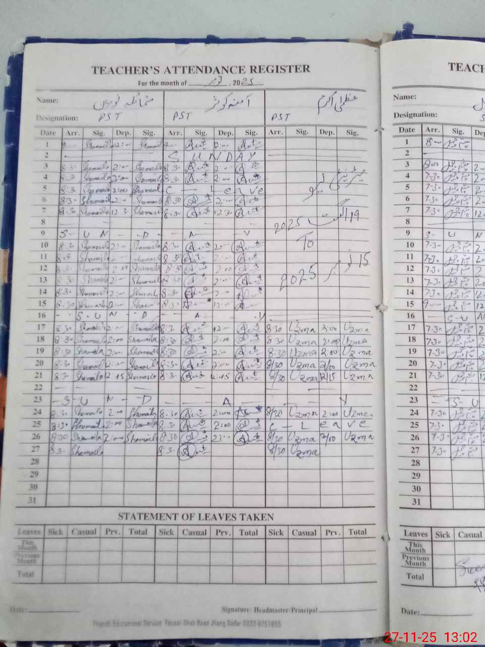 | 33**** | Al**** Di**** | SG | 0 | 0 | 0 | 0 | 0 | 0 | 0 | 0 | 0 | Absent (Un-Authorized) | |
