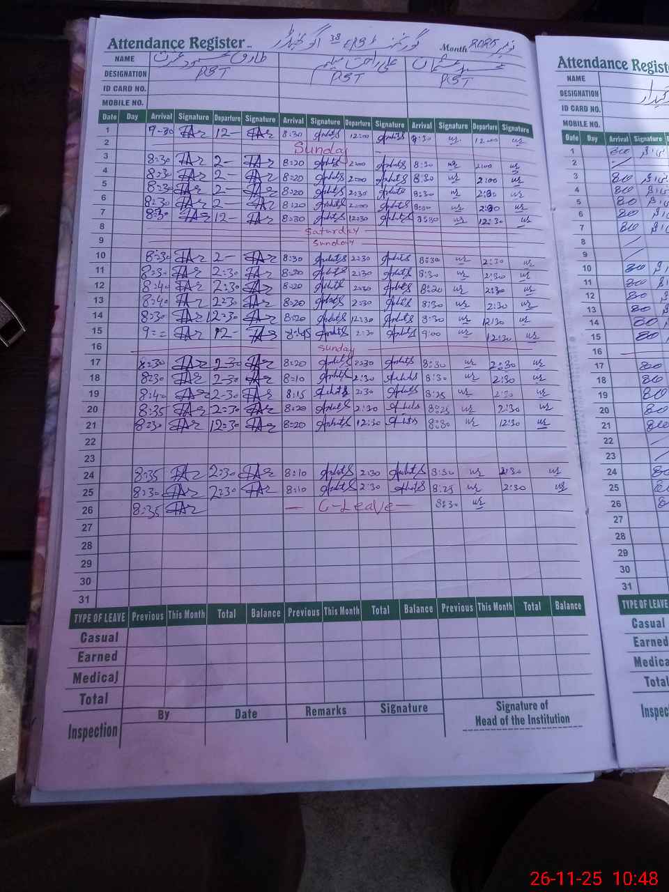 | 34**** | Sy**** Ib**** Hu**** Sh**** | SST | Regular | 0 | 0 | 0 | 0 | 0 | 0 | 0 | 0 | 0 | Exam Duty |