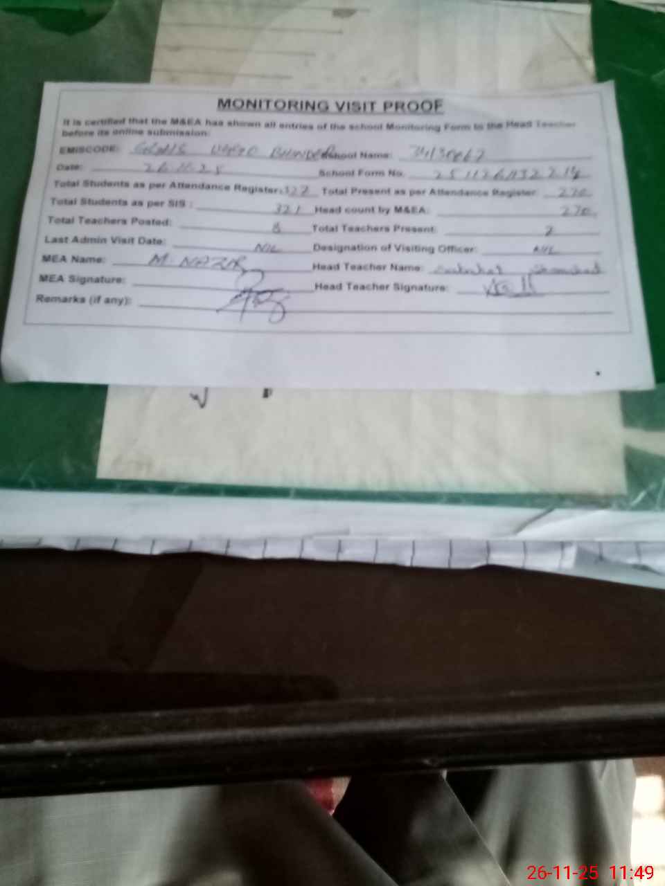| Certified that this School was Inspected by the Undersigned MEA/DMO Today and the Information Stated Above is as Per Record. | |||||