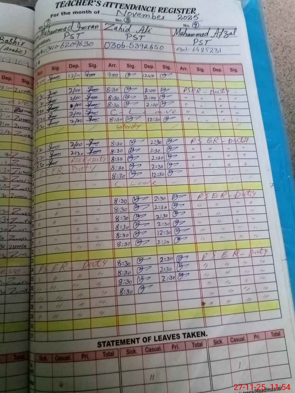 | Name: MU**** AS**** Designation: (School Headmaster's/Headmistress's) EST Phone/Cell Number: 03**** |