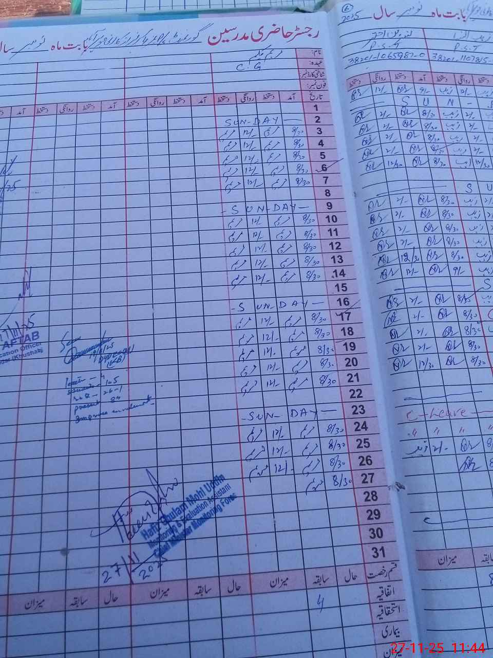 | CNIC | Full Name | Designation | R/C | Absence During Last Calender Month |
