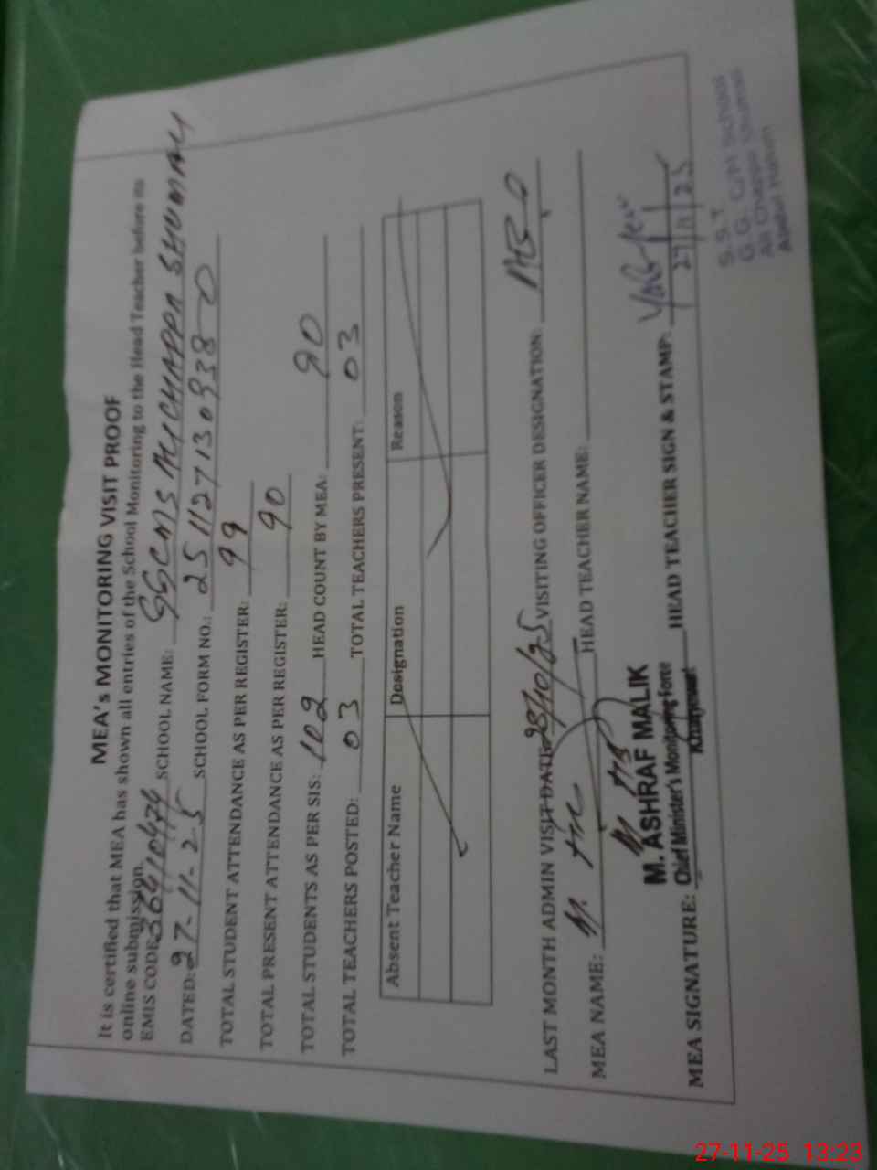 | EMIS Code: 36410474 | Name of School: GGCMS ALI CHAPPA SHUMALI ABDUL HAKIM | |||