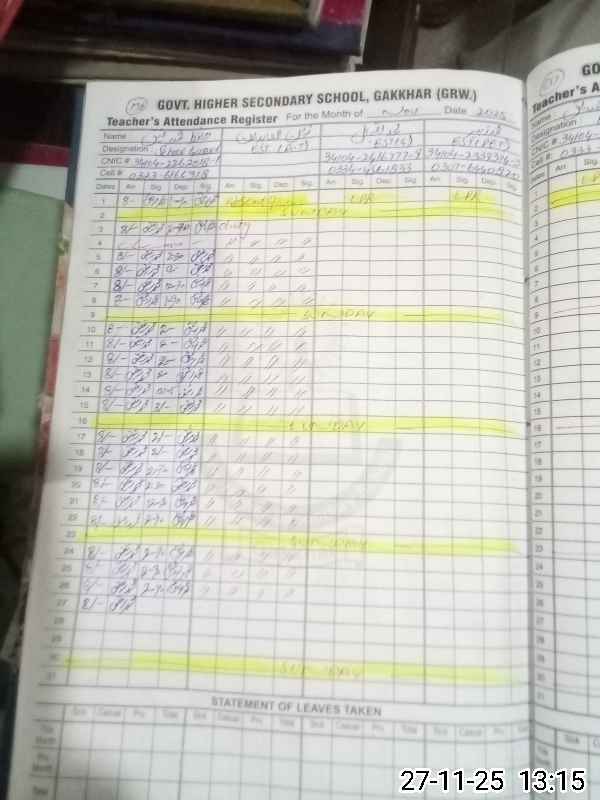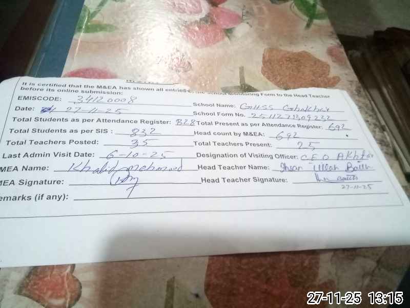 | EMIS Code: 34120008 | Name of School: GHSS GHAKHAR | |||