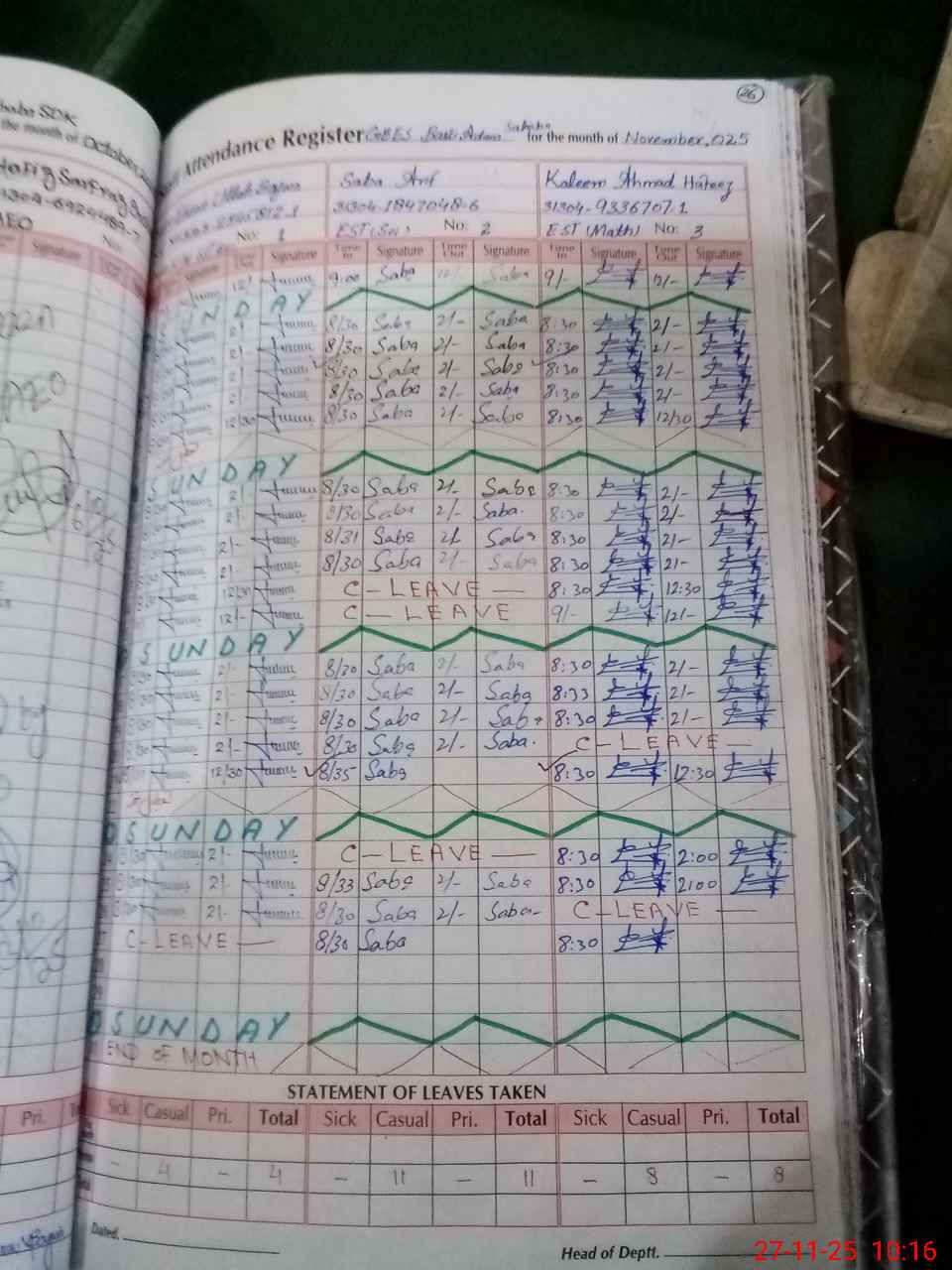 | 31**** | Ab**** Hu**** | C4 | Regular | 2 | 0 | 0 | 0 | 0 | 0 | 0 | 0 | 2 | Casual |
