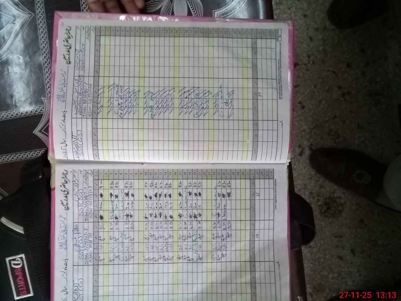 | CNIC | Full Name | Designation | R/C | Absence During Last Calender Month |