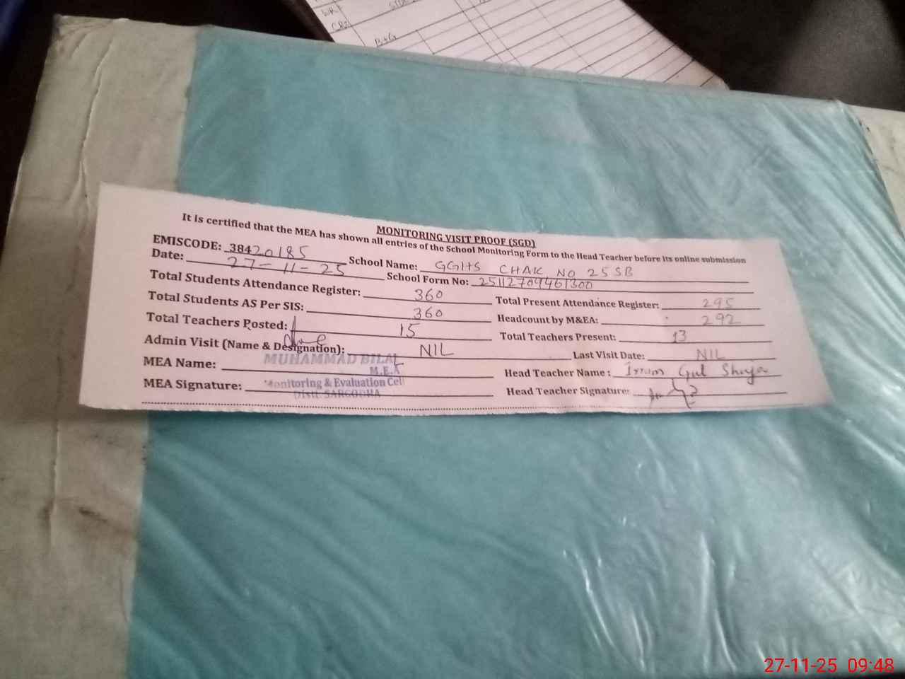 | EMIS Code: 38420185 | Name of School: GGHS CHAK NO.25 SB | |||