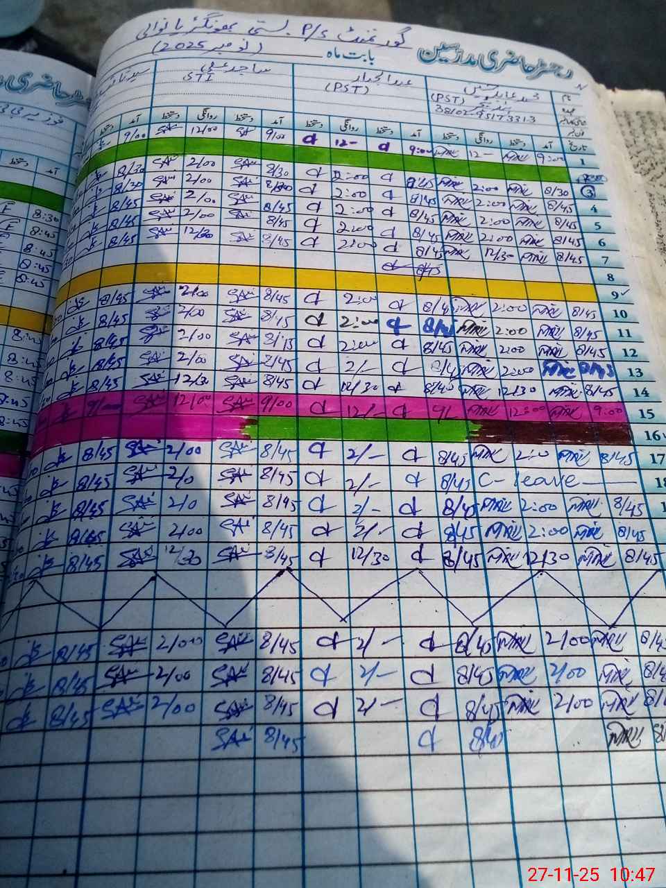 | CNIC | Full Name | Designation | R/C | Absence during last cal. month |