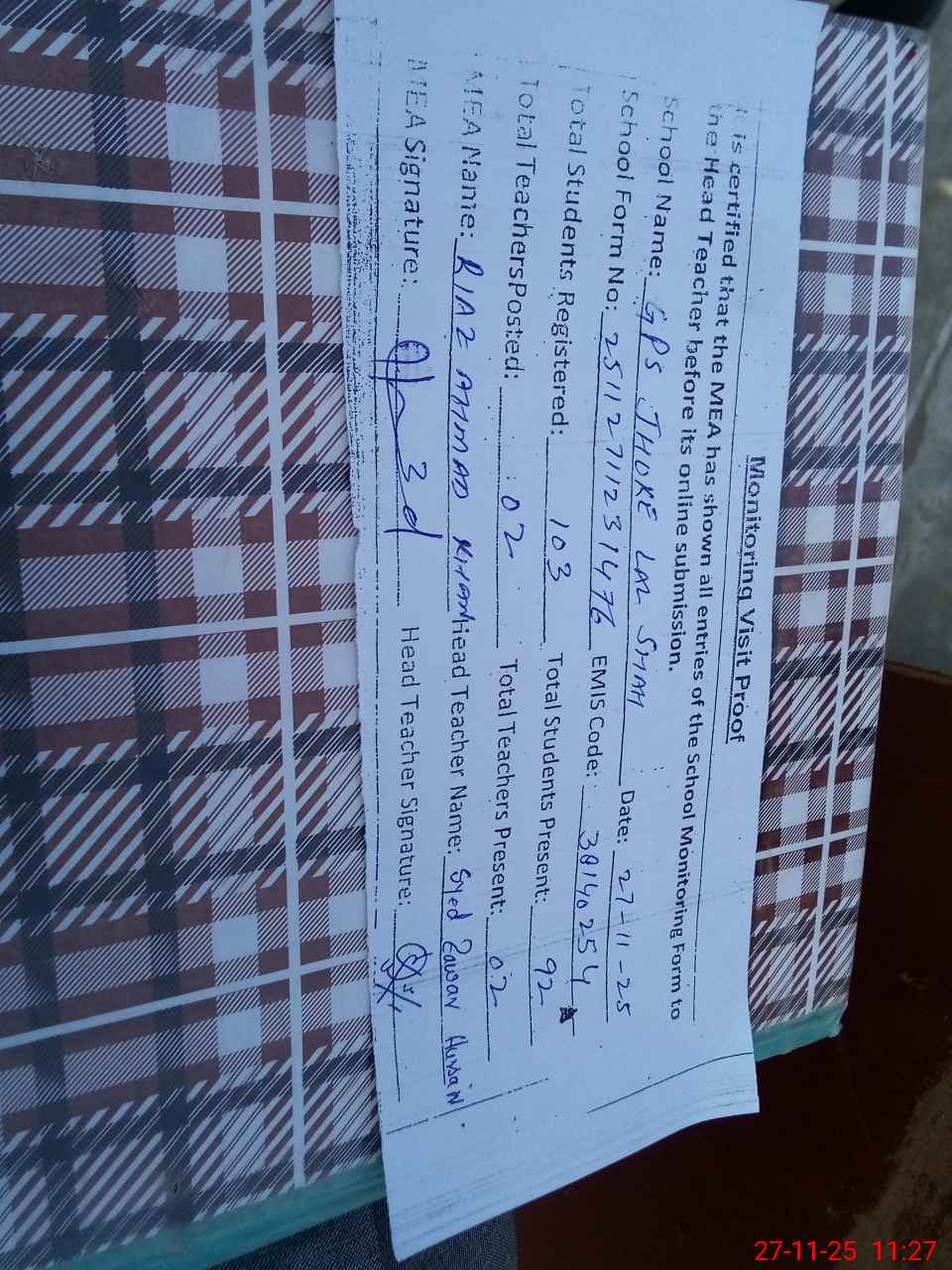 | EMIS Code: 38140254 | Name of School: GPS JHOKE LAL SHAH | |||