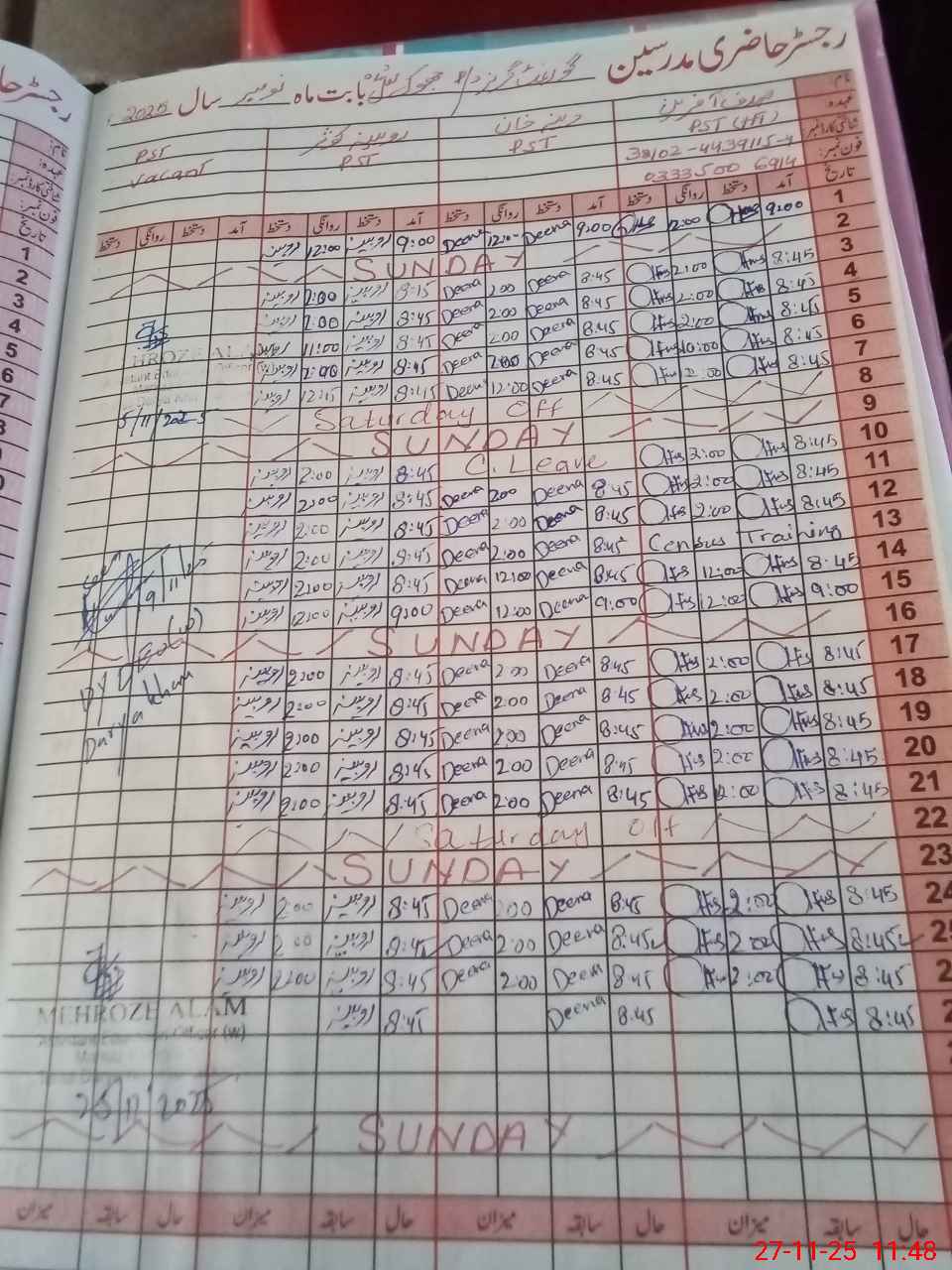 | Name: Sa**** Af**** Designation: (School Headmaster's/Headmistress's) PST Phone/Cell Number: 03**** |