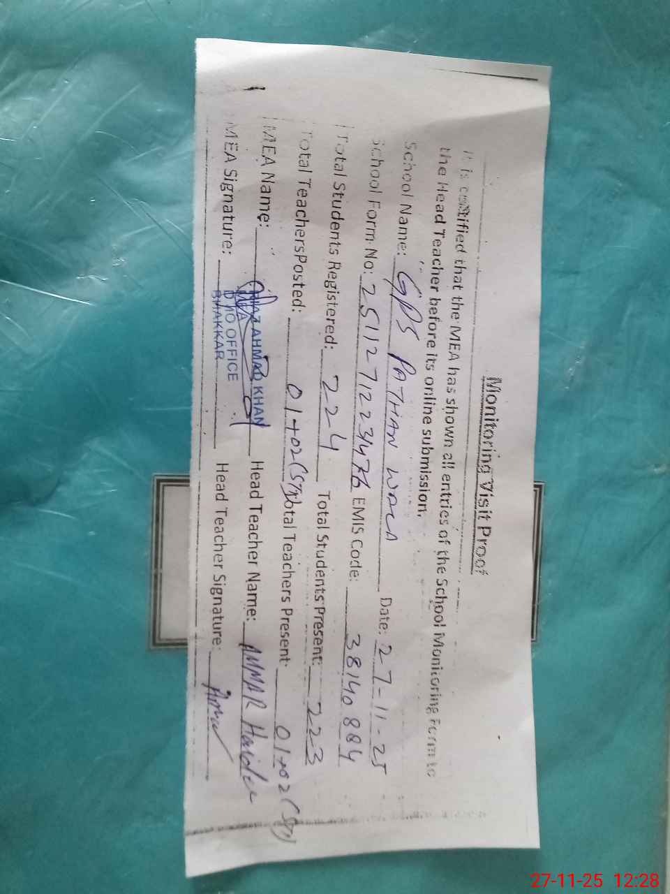 | EMIS Code: 38140884 | Name of School: GPS PATHAN WALA | |||