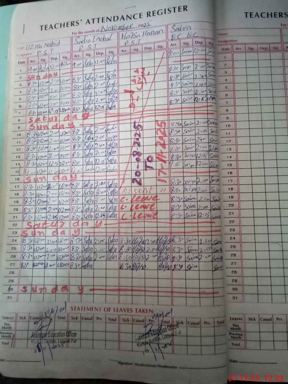 | Leave | Duty | Absent | Maternity | Medical | Ex- Pak |