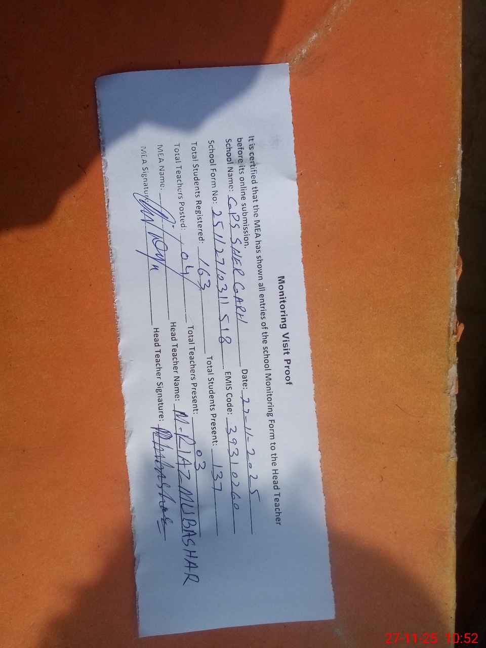 | EMIS Code: 39310260 | Name of School: GPS SHER GARH MOHALLA NOOR SHAH | |||